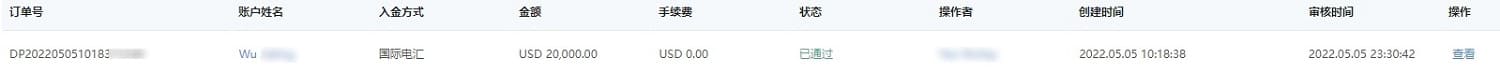● 举个例子,如果客户提交的电汇入金截图显示其汇出了 USD1,820,最后公司账户实际收款 USD1,780,后台会以USD1,780通过该入金订单,再将USD40补入客户的交易钱包。