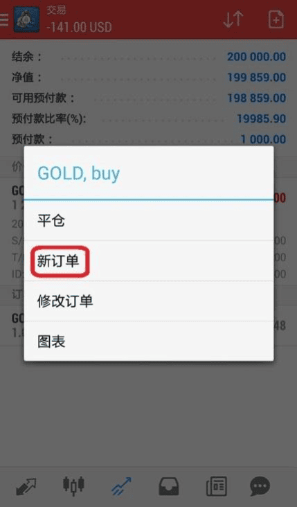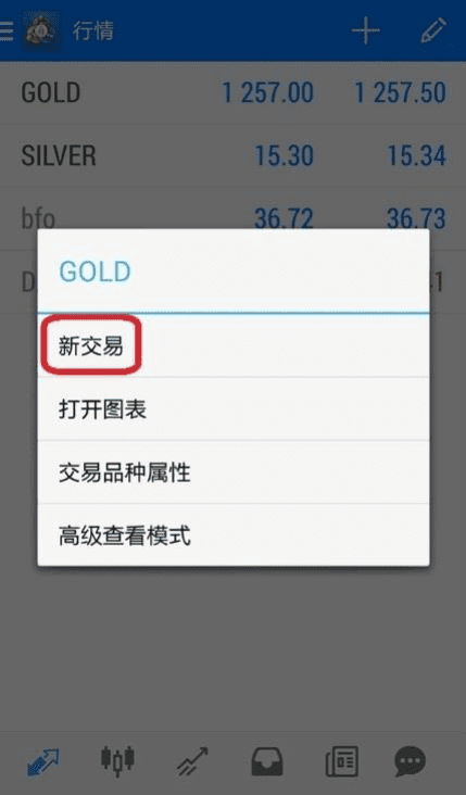 1、于行情版块进行交易 点击交易品种→选择“新交易”