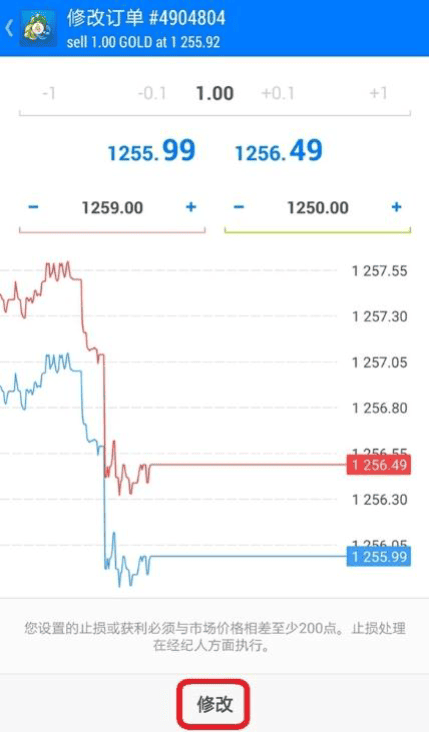 在“交易”版块中长按需要修改的交易单,在弹出菜单中点击“修改订单”开启修改止损/获 利页面。在交易单修改页面输入止损/获利价格,点击“修改”,待系统显示交易单的止损/获 利修改信息,点击“完成”即可。