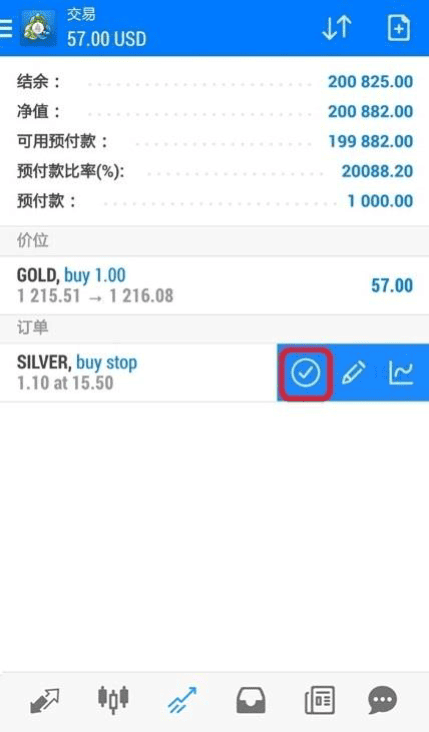 软件的“行情”、“图表”及“交易”版块都可以建立新的交易单或挂单。