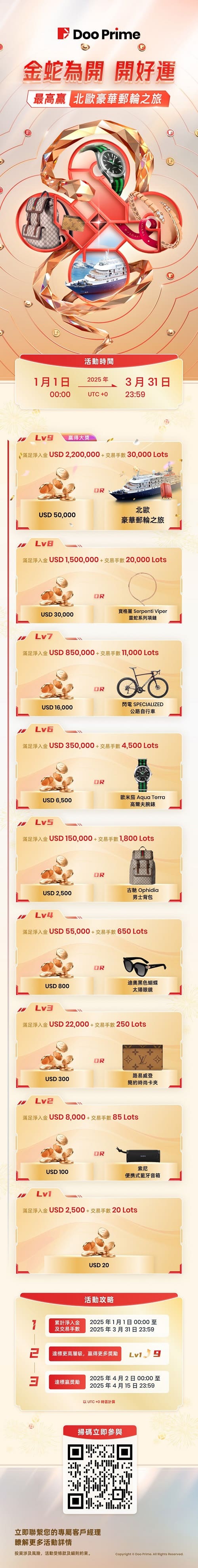 ■ 活动提供 9 个达标层级,层级 2 至层级 9 可提供 2 样可供选择的奖品(含美元、旅游、高奢品牌出行礼品等)