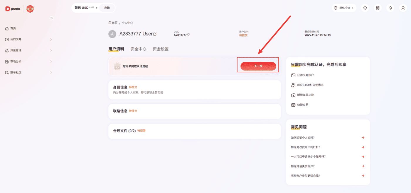 点击【前往认证】后,选择【用户资料】,并点击【下一步】。
