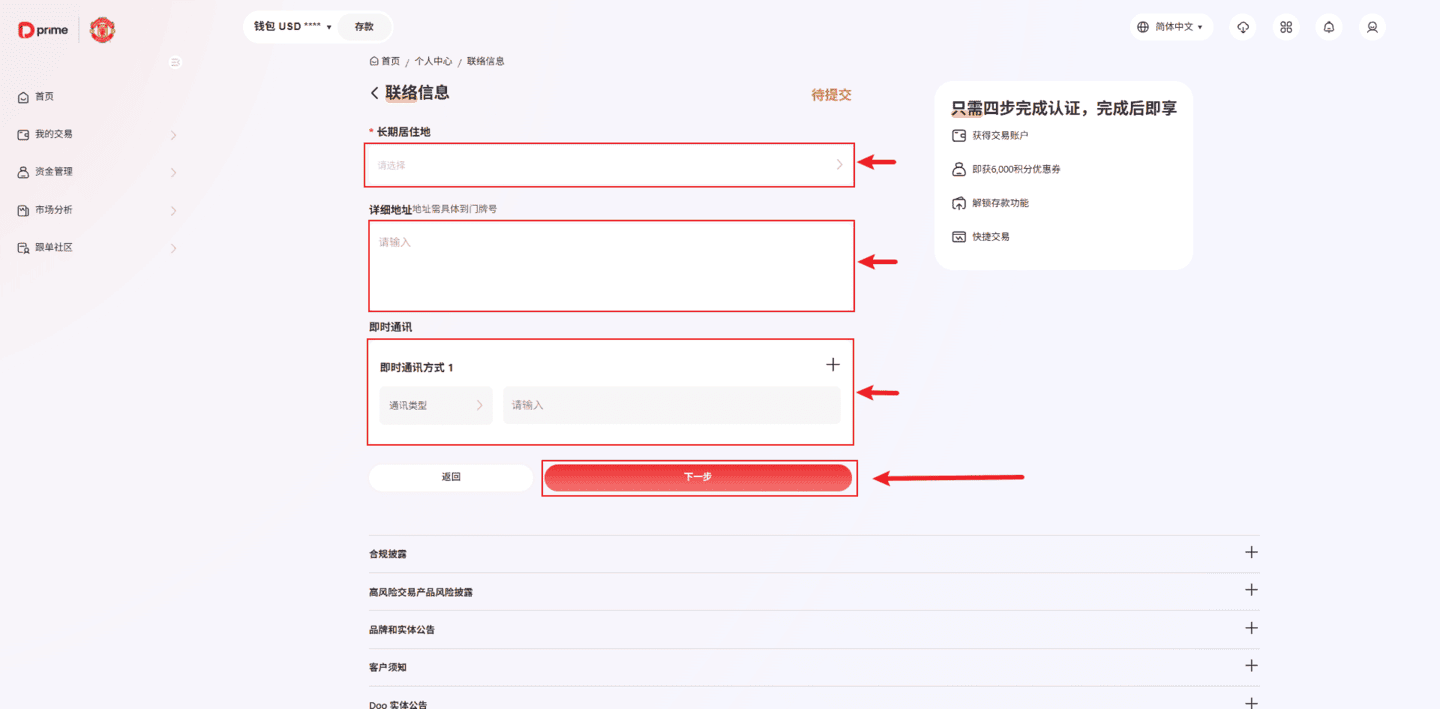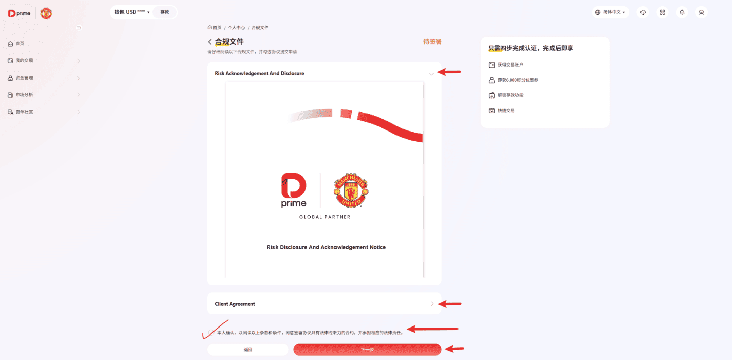 点击【提交】后,您的开户申请提交给D Prime进行审核。