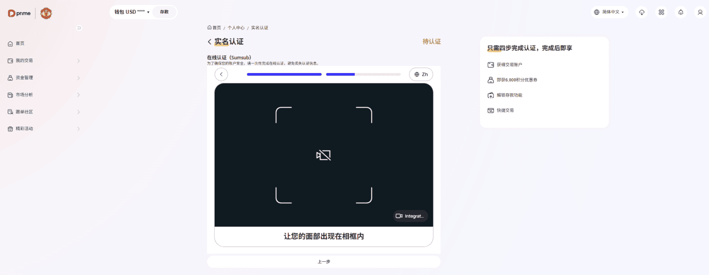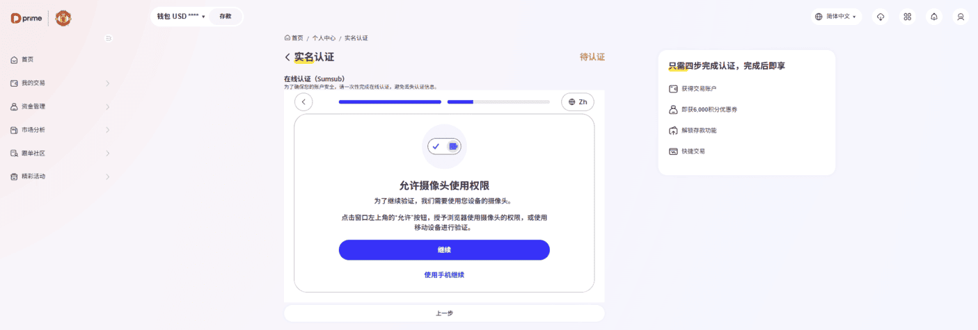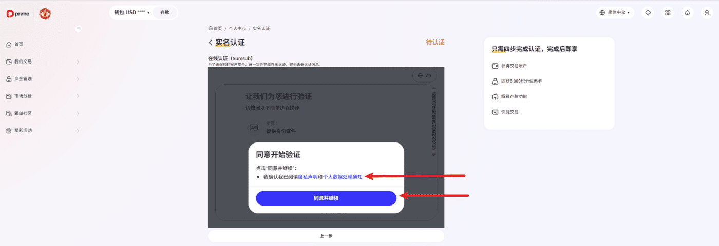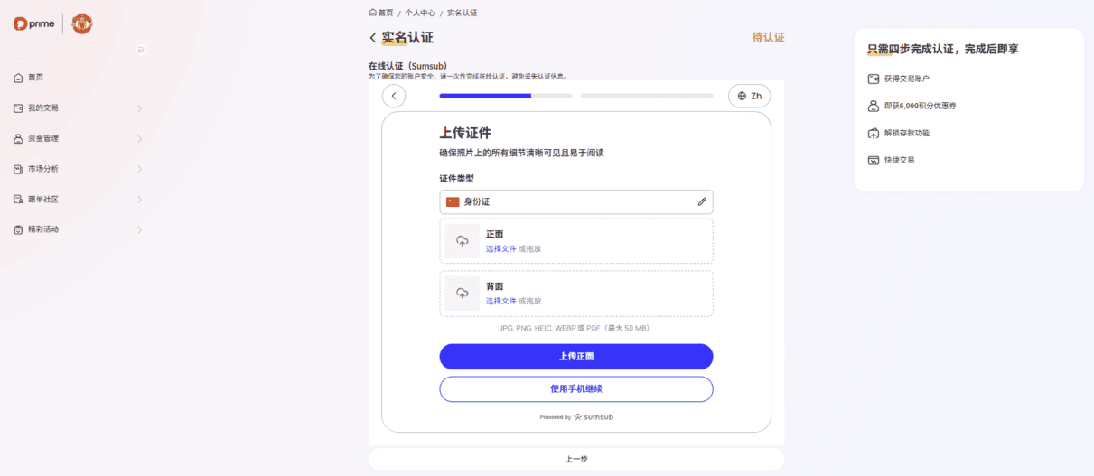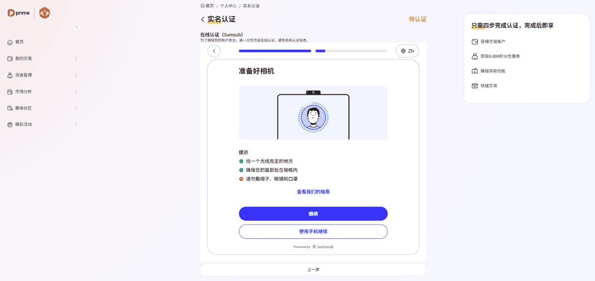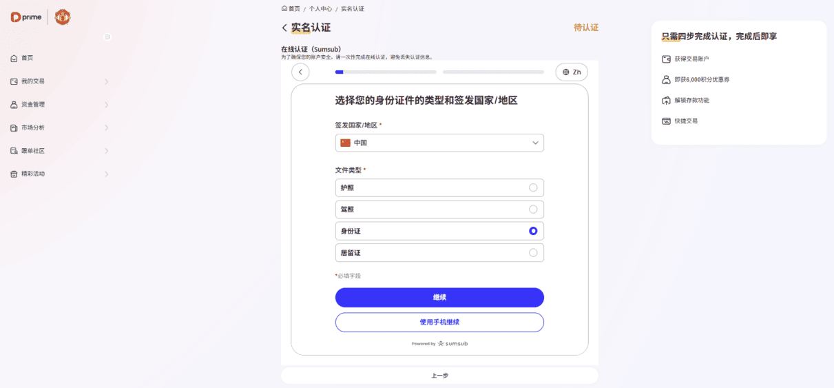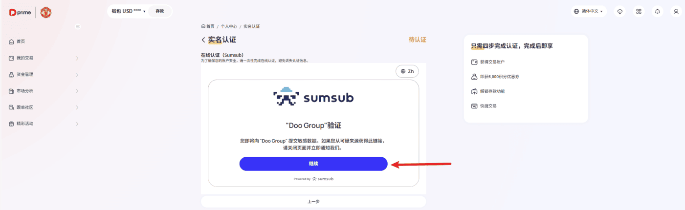 点击【继续】按钮,进入在线认证(Sumsub) 页面。