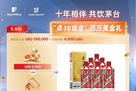Doo Prime 10周年献礼🎉参与活动并达到 Lv 6 📈即可获得茅台白酒一箱 🥂更有海量奖金豪礼等您赢取 🎁邀您共饮茅台,共品十年醇香时光 🍾