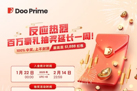 喜 DOO 蛇年, Doo Prime 百万美金开运红包活动广受好评,活动反应十分热烈。Doo Prime 特此额外延长活动时间 一周!即日起继续入金,每 USD 1000 的累计CRM入金 均可获得一次抽奖机会,100% 中奖,总奖金额 上不封 ...